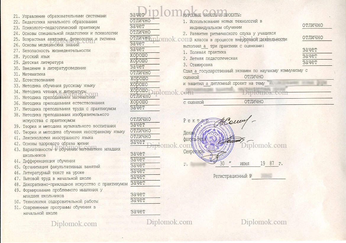 Дипломы СССР о высшем образовании, оформляемые нами, невозможно отличить от оригинала. Использование официальных бланков, проставление всех требуемых учебных программ, подписей и печатей гарантирует, что ни один человек, у которого в руках окажется данный документ, не усомнится в его подлинности. Купить диплом о высшем образовании СССР старого образца у нас – верное решение. Специализированный сайт обеспечивает конфиденциальность заключение сделки, оперативность создания и доставки бумаг, а также предлагает документы по доступной цене. Покупка диплома обойдется Вам в разы дешевле, чем обучение в университете, к тому же Вы сэкономите несколько лет своей жизни, которые можно потратить на построение карьеры.